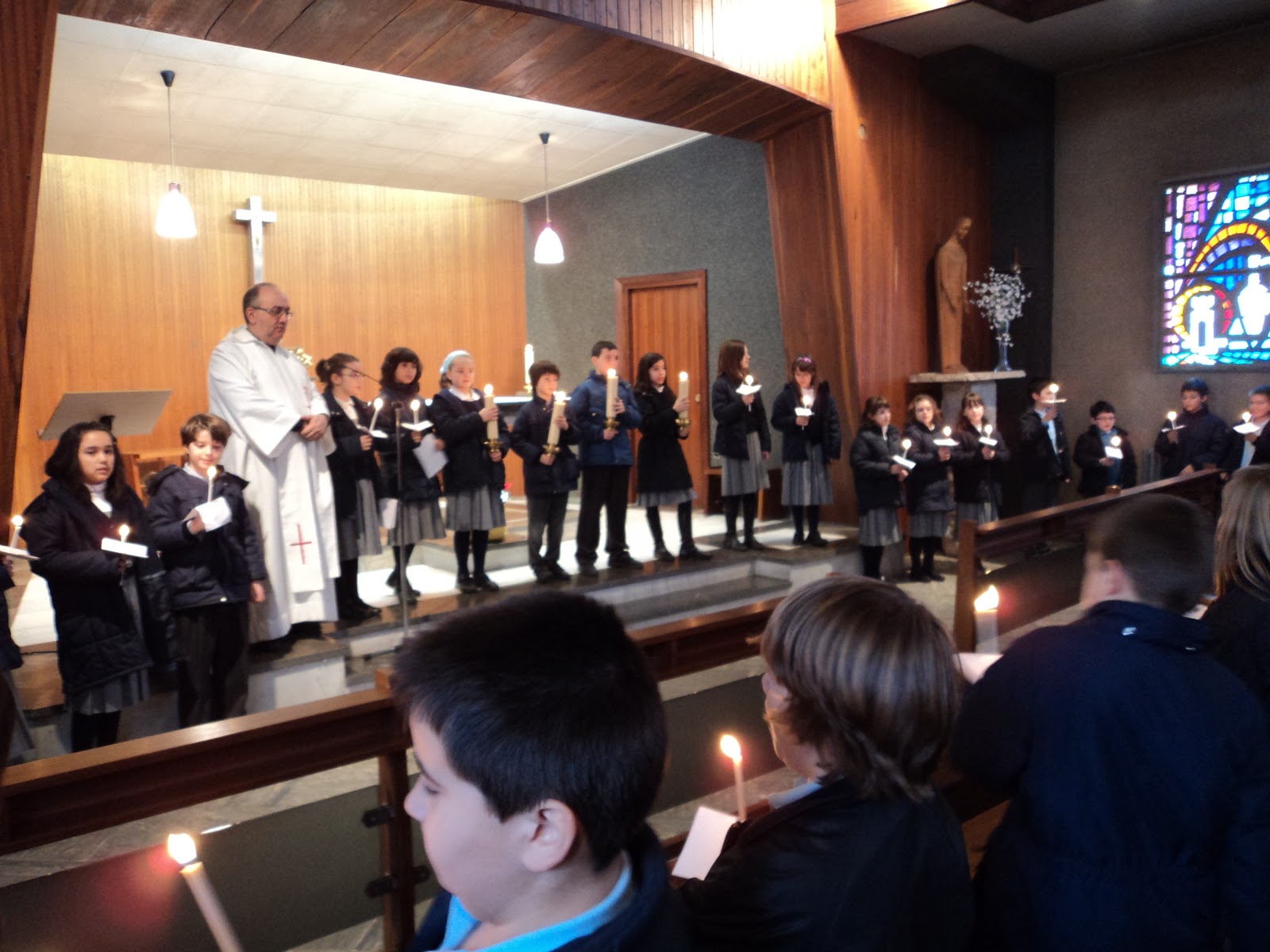 Els alumnes de 4t, 5è i 6è de primària hem participat en la celebració de la festa de la llum en record de la presentació de Jesús al temple i la purificació de Maria. Hem fet una petita processó entrant a la capella amb espelmes enceses. Al llarg de la celebració hem expressat mitjançant pregàries el nostre desig de ser llum per a tots els qui ens envolten.